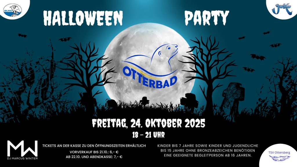 Am 24.10. bleibt das Otterbad aufgrund der Vorbereitungen für unsere Halloween-Party für den regulären Badebetrieb geschlossen.